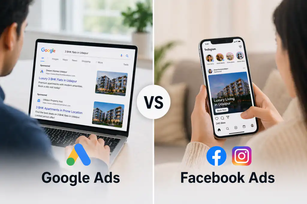 Brand Chanakya is Udaipur’s leading digital marketing agency specializing in real estate and B2B brands. We manage full-funnel Google and Meta campaigns for developers, builders, and real estate firms — from pre-launch buzz to final booking.
