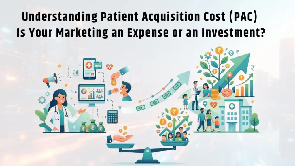 For example: If your hospital spends ₹2,00,000 on Google Ads and agency fees and acquires 100 new patients in a month, your PAC is ₹2,000 per patient.